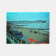 Pescar à noite na praia de Southwold com papoilas vermelhas no primeiro plano e no píer de Southwold à distância.