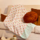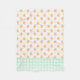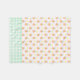 Pêssegos doces, flores retro brancas e gingham verde-claro