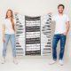 Um design de música divertida amante de teclado e piano com teclados curvos para piano à esquerda e à direita, e um design de pontuação musical no meio em preto e branco com notas de música vermelha semitransparentes Piano e partitura de música 2 piano, órgão, teclado, música, amante, clf, música, notas de música, preto, branco