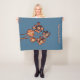 Uma imagem ligeiramente estilizada, marrom e laranja de cinco flores feitas de cones de torta em um fundo azul neutro. Adicione seu próprio texto.