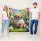 Cobertor De Velo Pintura de Flores de Cachorro de Pekingese