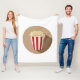 Pipoca em uma banheira vermelha e branca listrada clássica com um fundo circular marrom. A pipoca parece saborosa para ser comida ao assistir a um filme. Pode ser uma boa design para usar no seu cobertor, especialmente se você gosta de pipoca também!