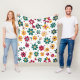 Esta trabalho de arte apresenta um padrão lúdico e alegre de flores estilizadas espalhadas sobre um fundo branco. O design incorpora uma paleta vibrante de vermelho, amarelo, verde e bege, com cada flor composta por pétalas simples e arredondadas. As flores são entremeadas com pequenos pontos e formas foliares, acrescentando-se ao sentimento vivo e caprichoso da composição. O arranjo é aleatório e livre-espirituoso, criando uma atmosfera alegre e divertida com seus brilhantes e coloridos florescimentos.