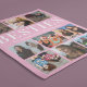Um cobertor personalizado de campanha de amizade com um fundo rosado e giro que pode ser mudado para qualquer cor, 9 fotos de você e sua melhor amiga, e uma fofa citação de melhores amigos.