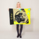 A ilustração bonito da arte do pug com círculos de cor amarelos do fundo e do aqua, nome da raça imprimiu no fundo preto