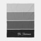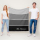 Este cobertor de tendências apresenta quatro faixas em diferentes gradientes ombre de preto, carvão e cinzas, e seu nome na tipografia de scripts para um olhar moderno.