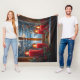 Beautiful watercolor image of a window looking out at the snow, there are pretty red candles with bright flames on the window sill and Pine Trees with Christmas lights outside the window. Lovely fleece blanket can be customized with any text, for your self or holiday giving.