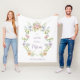 Este belo cobertor apresenta um cheio de aquarela de flores silvestres, em cores pastéis de folhas azuis, cor-de-rosa e roxo mais folhas verdes botânicas. Texto roxo e script elegantes adicionam estilo feminino adicional. O cobertor diz "Amo-te mãe", e tem um espaço para o teu nome. O texto pode ser facilmente alterado para dizer "Nós te amamos, mãe."