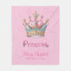 A bela arte de uma coroa e a palavra princesa adornada com flores e personalizar isso para suas necessidades. Cores de pastel e estrelas celestiais espumantes. Muito único para aquela princesa em casa. Faz um presente de excelente para um chá de fraldas anunciando o sexo do bebê. É bonita e vai pôr essa fantasia na garota especial como ela é. Faça este cobertor macio qualquer dia usar para fazer sua princesa parecer a realeza que ela é. Perfeito por dar aos netos ou ao bebê recém-nascido da amiga ou a uma menina de aniversário que é uma bela princesa até mesmo para uma adolescente, este será um belo presente para enfeitar o quarto dela e mantê-la quente. Excelente para um doce dezesseis, fiesta de quince, Bat Mitzvah ou só porque.