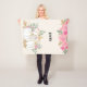 Um cobertor com abóboras brancas de cor d'água de rico com acentos de falso brilho dourado. Cercados por folhas verdes e flores rosas selvagens.