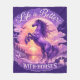 Embrace your passion for majestic equines with this enchanting fleece blanket, featuring a breathtaking scene of a purple horse rearing against a vibrant sunset sky. The ethereal glow of the setting sun illuminates the clouds and water, while a silhouette of trees and distant mountains adds depth to this fantasy landscape. Delicate butterflies and birds flutter around the scene, enhancing the magical atmosphere. This cozy blanket, adorned with the inspiring phrase "Life is Better with Horses," is perfect for any horse lover seeking warmth and a touch of fantasy in their home. Wrap yourself in the magic of these beautiful creatures and let your imagination soar.