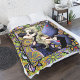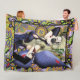 Fada de fada loira vestida roxa e vermelha num padrão geométrico floral de verde, ornamentação, lavanda e rosa,