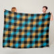 Um cobertor retrô colorido projetado lança borda no velo em azul, laranja e preto