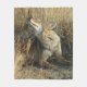 Cobaiar coçando um cobertor de lã. Os coiotes também coçam, um jovem coiote cuida de uma coceira num belo dia de outono nas planícies do sudeste de Alberta, Canadá.