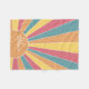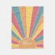 Um design de nascer do sol colorido, de faixa retrorativa, com cores pastel. As listras são pastéis - vermelho, laranja, amarelo e azul claro. Adicione seu nome ou monograma para fazer disso um cobertor pessoal que se destacará entre seus amigos. O nome é um script de tendência em branco.