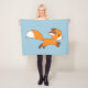 Um pequeno kit de raposa de desenho animado com orelhas grandes e cauda arbustiva está correndo rápido.