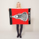 cobertor de lacrosse com design de lax stick-and-ball em fundo vermelho. Editar texto para adicionar o nome do jogador e o número da equipe.