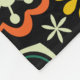 Padrão colorido de flores retrorreflectoras sobre fundo preto com ilustração colorida do crânio de açúcar.