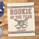 Este cobertor de beisebol estilo vintage apresenta a frase ousada "Rookie of the Year" com morcegos cruzados, uma luva e uma bola. Personalizável com nome e ano, este design nostálgico é perfeito para celebrar jogadores de liga, recém-nascidos ou qualquer fã de beisebol novato.