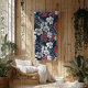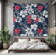 Flores cor-de-rosa e branca contra fundo azul-marinho neste impressão floral tropical.