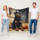 Cobertor De Velo Rottweiler Pumpkins Halloween Assustado