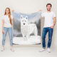Esta confortavelmente cobertura bonita caracteriza meu design de um rouco branco com olhos azuis, contra um fundo do inverno.
