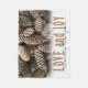 Cones de pínus festivos e rústicos acentuam este clássico, elegante design desejando um feriado de Amor e Joy.