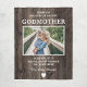 A madrinha te obrigado com um coração e uma mensagem sincera sobre um fundo de madeira rústica. Personalize-o adicionando seus nomes na parte inferior ou alterando o texto. Ideal para o Natal ou qualquer ocasião especial.