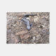 Foto de uma salamandra de cor azul andando no chão úmido.
