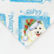 Celebre o feriado e fique aquecido com este cobertor coberto por esses lindos Samoyeds vestindo chapéus de estocagem em meio a flocos de neve e as palavras, Happy Howlidays! Excelente ideia de presente de Natal para a família e amigos amantes de Sami.