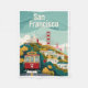 Capturar o encanto icônico da Califórnia em São Francisco com esta imagem ao estilo poster de viagens vintage . Um clássico carro a cabo vermelho graciosamente viagem as ruas da cidade, oferecendo um vislumbre da movimentada cidade. Ao fundo, a majestosa ponte Ouro Gate fica alta no pano de fundo de um dia ensolarado, adicionando um toque de beleza eterno à cena. Seja você fã da estética da viagens vintage ou simplesmente atraído para o atrativo dos marcos de São Francisco, esta trabalho de arte evoca certamente um sentimento de nostalgia e ansiedade. Este design de colheita trará de volta as memórias de posteres de viagens clássicos de uma era passada.