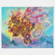 Pintura aquosa colorida, branca, vibrante, em azul-aqua brilhante, turquase, teal, vermelho, amarelo-dourado, rosa, cores fuchsia, ouro e folha prateada da Bulgária Lumini (c) 2009. Os dragões chineses simbolizam tradicionalmente potentes e auspiciosos poderes, em especial o controlo sobre a chuva, a água. O dragão é também um símbolo de poder, força, e boa sorte, imortalidade e heroísmo.