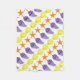O cobertor apresenta uma ilustração original de uma fileira de designs de praia clássicos, incluindo estrelas-do-mar e conchas roxas e amarelas. Não vê o que está procurando? Precisa de ajuda para a personalização? Entre em contato com Rebecca para ter algo projetado só para você.