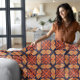 Enrole-se na arte com a nossa 'Simetria Vibrante da Folha Artística'. Este cobertor apresenta um padrão formidável, ladrilhado com cores ricas e designs intrincadas, que lembra o vidro colorido. Cada segmento do design interliga-se perfeitamente para criar um efeito mesmerizador ousado e convidativo. Perfeito para adicionar uma abertura de cor à sua sala de estar ou ao seu quarto, este cobertor combina conforto com uma excepcional exibição de arte.