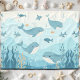 Apresentando o nosso cobertor de baleias e peixes debaixo do mar! Esta design apresenta uma ilustração fofa de baleias, peixes e recifes.