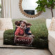 Crie um cobertor de velo personalizado para celebrar sua família. "Família" sobrepõe sua foto em um roteiro branco-na moda com baloiços. Adicione seu nome em uma simples tipografia branca.