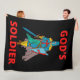 Este cobertor de velo tem as palavras Soldado de Deus em uma fonte impressão ousada mais letras vermelhas com um soldado em armário cheio ou segurando uma espada mais escudo no centro com um tema baseado na fé. Este cobertor é feito de um veleiro de 100% de tecido mole e confortável veloz velo de poliéster com impressão de cores vibrantes de borda a borda e costura de borda dupla com uma máquina de trás colorido esbranquiçada e lavável.