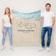 Novo cobertor de velo temido do oceano apresentando uma praia arenosa vintage com dois corações na costa, calmando mar azul, suas iniciais, nome e data do casamento.
