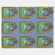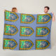 Um cobertor com um kraken feito no estilo de uma janela de vidro corada medieval. O design está em um fundo transparente para que o comprador possa escolher uma cor de fundo que melhor se adapte às suas necessidades.