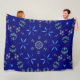Este trabalho de arte apresenta um padrão de abstrato vibrante e simétrico contra um fundo azul índio profundo. O design combina elementos florais e geométricos, com formas pétais luminosas dispostas em formações radiais, parecidas com flores estilizadas ou estereótipos. Essas pétalas brilham em tons de azul elétrico com sutis contornos verdes, criando um sentido dinâmico de profundidade e energia. Espalhados entre os motivos maiores estão pequenos aglomerados de órbitas iridescentes, semelhantes a bolhas em matizes arco-íris - vermelho, teal, rosa e verde - acrescentando um toque lúdico e futurista. No centro da composição está uma formação caleidoscópica em forma de mandala composta dessas mesmas esferas brilhantes, ancorando o design e aprimorando sua simetria hipnótica.