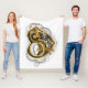 Mechanical, volumetric, steampunk heart with pressure gauge, steel and gold gears on white background. Steampunk style.