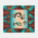 Este é um único "Um dos tipos" do sudoeste de Kokopelli Sherpa Blanket! Apresenta um Kokopelli Sudoeste Tocando Flute e Dançando Sob o Sol em um Fundo Turquesa e Laranja Sunset.. Cercado por uma Fronteira Sudoeste em Turquesa, Design de Arte Original Laranja & Preta pelo Artista Kerry Miller.
