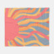 Este cobertor de velo médio tem uma design natural de um nascer do sol feito de linhas curvas em vermelho, amarelo e laranja, um sol, e o céu.