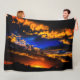 Este cobertor de velo tem uma fotografia de pôr do sol nublada.