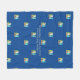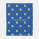 Sea blue fleece blanket with pattern of hand-drawn surfboards. Personalize text with family name, couple's name, or cottage name. Include date established, or any text. One or two lines fit best. The surfboard art contains tropical designs and colors.