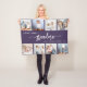 Dê à vovó um presente que ela amará. Este cobertor de colagem de fotos apresenta oito das suas fotos quadradas favoritas dos netos, juntamente com a mensagem "Love You Grandma". A palavra "vovó" aparece em um elegante roteiro branco de escrita manual com florescimento no começo e no fim em um fundo roxo. Adicione os nomes de até quatro netos. Um presente ideal para feriados, aniversários ou dia de avós.