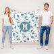 Este cobertor de velo bonito com tema de futebol apresenta um padrão espelhado de bolas de futebol com a frase "O campo de futebol é meu lugar feliz" em uma fonte casual de estilo manuscrito junto com formas cardíacas que se estendem entre as linhas angulares das bolas de futebol - os painéis pretos das bolas de futebol são teal recolorada - o nome do atleta e o monograma podem ser personalizados no grande pendante do círculo oposto - o fundo é personalizado branco ajustável - substitua facilmente o monograma pela letra varsity do jogador ou número de camisa - por katz_d_zynes