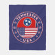Crachá do Tennessee com bandeira do Tennessee e bandeira dos EUA, cores, forma arredondada. Emblema do Tennessee. Selo do Tennessee. Coleção dos Estados Unidos.