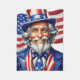 Tio sorridente Sam USA American Icon vestindo um terno americano e uma bandeira americana balançando ao fundo