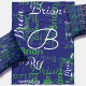 Adicione seu próprio nome para fazer um design de padrão azul e verde sem problemas. Nomes em diferentes estilos de fonte com letra inicial